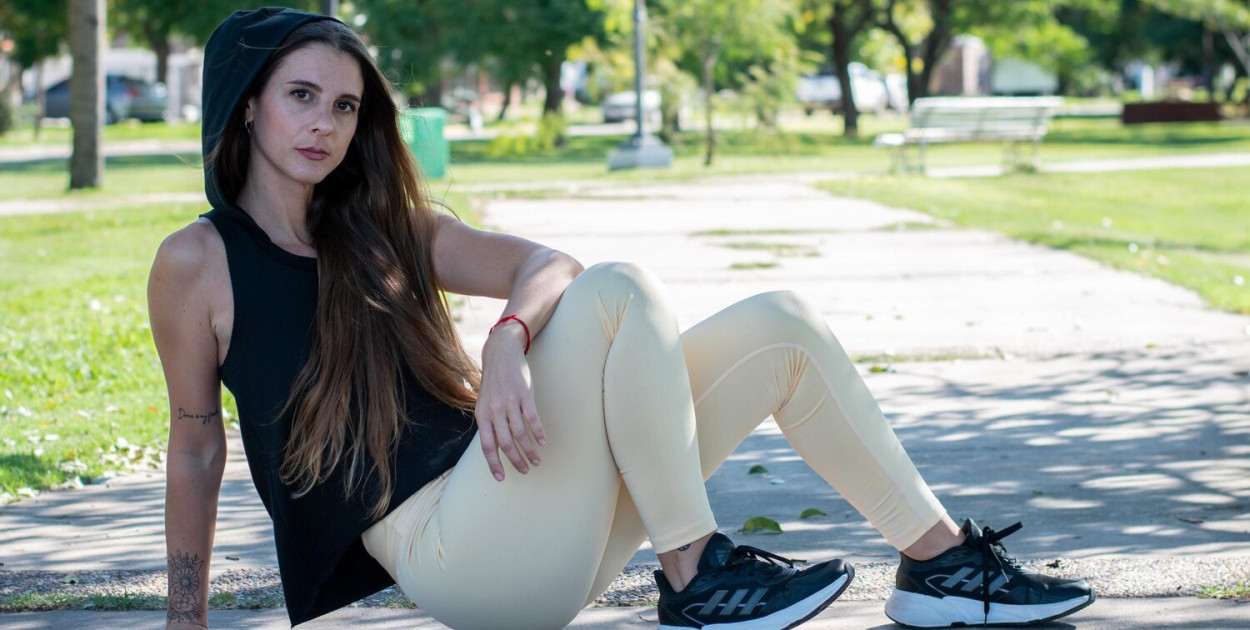Legginsy w neutralnych barwach + wzorzysta góra ? sposób na dodanie energii i koloru stylizacji.