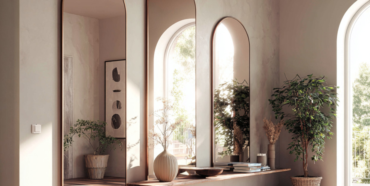 Pojedyncze lustro pełni zazwyczaj funkcję użytkową – służy do przeglądania się, doświetlania pomieszczenia lub optycznego powiększania przestrzeni. W przypadku galerii kluczowe staje się rozmieszczenie, proporcja oraz relacja między poszczególnymi taflami. Kompozycja złożona z kilku luster – o różnej wielkości, formie i stylu – nie służy już tylko jako powierzchnia odbijająca, ale również jako element graficzny, który prowadzi wzrok i organizuje rytm ściany.